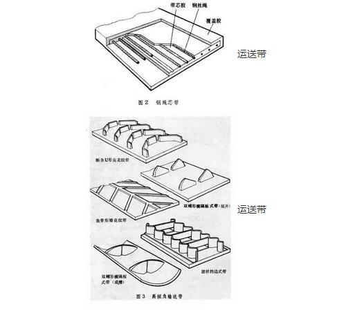 特殊輸送設(shè)備主要包含鋼絲繩芯帶、高傾斜度帶、耐亞熱帶、耐低溫帶、防火帶、金屬絲網(wǎng)制品帶、帶鋼等。①鋼絲繩芯帶:用多條柔韌度好、抗壓強(qiáng)度高的獨(dú)特鍍鋅鋼絲繩替代阻燃纖維芯的輸送設(shè)備(圖2)。自20世際60時(shí)代至今,鍍鋅鋼絲繩芯帶獲得了普遍的運(yùn)用。其斷裂伸長率可達(dá)到7000牛/mm,延展性伸展很小,橫著彎曲剛度小,耐沖擊性好。這類輸送設(shè)備適用于遠(yuǎn)距離皮帶運(yùn)輸機(jī),也用以一些皮帶運(yùn)輸機(jī)。②高傾斜度帶:包含矮斑紋帶、高斑紋帶、橫隔板帶和擋有邊(圖3)。矮斑紋帶的工作臺(tái)面遮蓋了橡膠上各種形狀的橡膠凸塊或凸條,相對高度低于10mm,以阻攔材料的層移,并用以運(yùn)輸粉狀和小顆粒的裝散材料。高斑紋帶表層的凸塊相對高度在10~25mm中間,以避免材料翻轉(zhuǎn),并用以運(yùn)輸中大粒度分布的裝散材料。這二種帶可以提升約10°。⑦帶鋼:由100mm以上的冷軋板做成。擋板的樣式分成雙鰭形。多鰭形。高條V形或單字型,可完成53°的往上運(yùn)送。帶波型或板塊邊沿的橫著擋板,邊沿相對高度為40~300mm,可豎直提高。③耐亞熱帶:以獨(dú)特橡膠為遮蓋材料的輸送設(shè)備,運(yùn)輸材料的最高溫度可達(dá)800℃。④耐低溫帶:也是以獨(dú)特橡膠為遮蓋材料的輸送設(shè)備,可在-55℃的條件中應(yīng)用。⑤難燃帶:以聚乙烯或獨(dú)特橡膠為遮蓋材料的輸送設(shè)備,適用于煤礦業(yè)地底。當(dāng)與滾桶或別的構(gòu)件產(chǎn)生明顯矛盾時(shí),不容易造成火苗并造成發(fā)生爆炸。⑥金屬絲網(wǎng)制品帶:由鐵絲編制而成,無覆蓋,用以運(yùn)送-55~1200℃的材料或在運(yùn)輸環(huán)節(jié)中進(jìn)行材料的脫干實(shí)際操作。⑦帶鋼:由厚0.2~4mm的冷軋板做成,適用于干燥機(jī)設(shè)備的輸送設(shè)備。⑧鋼筋網(wǎng)片帶。